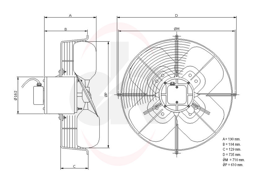 Ventilador Axial 610 mm RT-16250 Equipado con palas REVCOR, rejilla y motor. Categoría: VentiladoresEnviar consulta CurvasDimensionesDescargas Curvas y dimensiones
